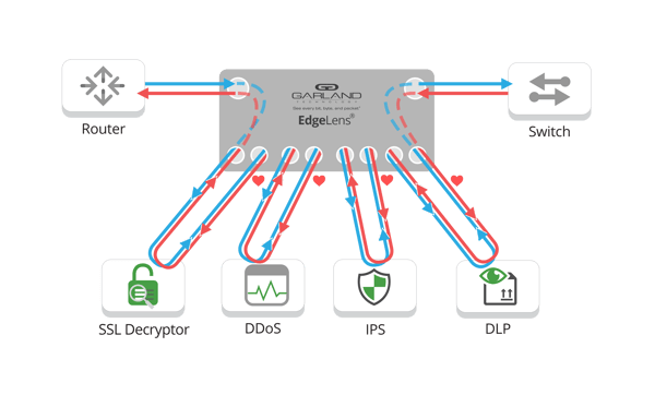 We don't just have the knowledge to help network professionals evade the perils and pitfalls of in-line security appliance deployment—Garland Technologies also has the hardware to back up our expertise. The EdgeLens® hybrid bypass TAP is a formidable enterprise security solution for administrators overseeing numerous in-line security appliances. Matching bypass TAP capabilities with intelligent packet brokering, EdgeLens will play a leading role within chained security stacks, emphasizing visibility and real-time monitoring both inline and out-of-band.