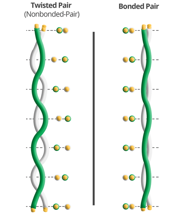 Twisted conductors might save you some money, but they are susceptible to damage during implementation and can cause greater challenges with network mismatching. Bonded-pair conductors are more suited for rigorous manufacturing environments.