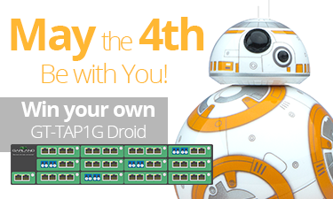 GT-TAP1G (Sphero BB-8) is fun and entertaining for the office, home or lonely data center. And small enough to sit on your desk and not take up any real estate. As a Star Wars fan and in coordination with our new product launch of the 1G Modular Packet Broker System, we want to bring a little fun to your day.