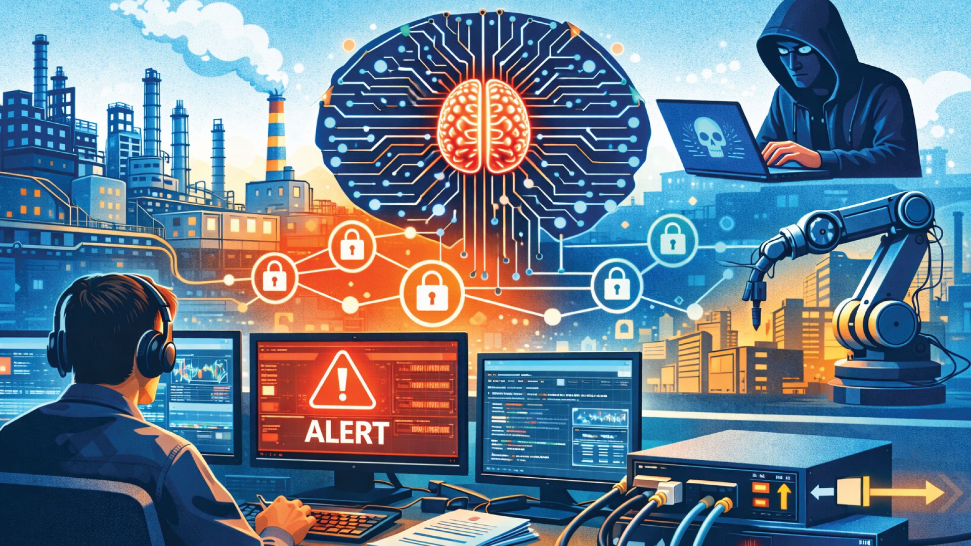 Illustration-of-AI-powered-OT-network-monitoring-with-a-security-analyst-reviewing-alerts-in-an-industrial-environment